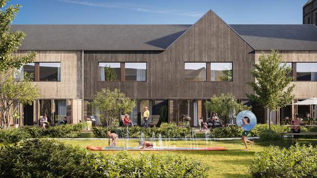 Trädloungen heter förstås så av en väldigt speciell anledning. Först och främst syftar namnet på den lummiga, mysiga innergården som omsluts av härliga husfasader av trä i naturlig färgskala. Miljön här ska fungera just som en lounge, en förlängning av varje bostads vardagsrum där du vistas i ett grönt rum och träffar dina grannar på ett avslappnat sätt. Men det stannar inte där, nej – konstruktionen är faktiskt i trä för både flerbostadshuset och radhusen. Att få bo i ett hus byggt med naturmaterial påverkar hur du mår och din livskvalitet. Trähus binder koldioxid, går fortare att bygga, är lättare än betong och är tystare – både att bygga och att bo i. Här bor du i en mysig, mjuk och varm hemmamiljö som även avspeglar sig på ytterväggarna beklädda i trä. Här lever du i ett hus med trä inifrån och ut, hela vägen ut i den gemensamma loungen på gården.